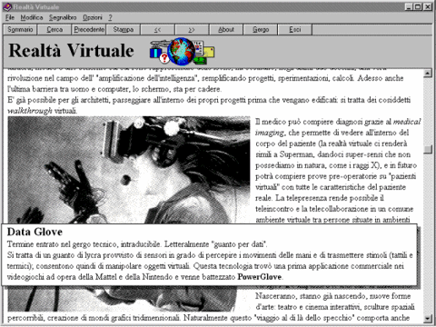 L'ipertesto può essere consultato partendo da due argomenti principali: la realtà virtuale e Internet. L'icona Ulteriori Informazioni è stata introdotta per raggiungere alcuni di quei paragrafi non toccati dai precedenti indici, ma è opportuno leggerlo dopo aver dato un'occhiata ai due precedenti.